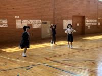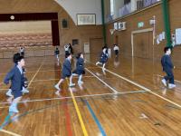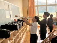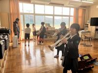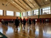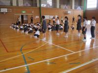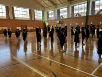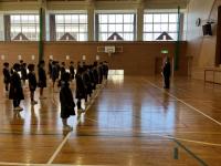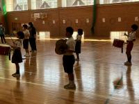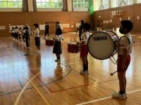 トランペット鼓隊のパート練習後、体育館で合同練習をしました。