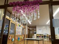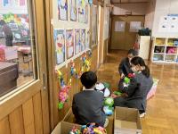 明日、6年生に喜んでもらおうと、教室をお祝いの飾りでいっぱいにしました。