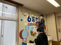 卒業式の後、6年教室では担任・卒業生・保護者がお互いに感謝の気持ちを伝え合いました。
