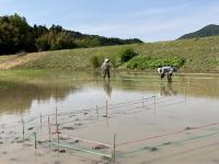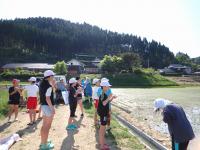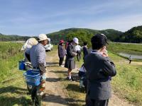1年生が町野川で鮎を放流しました。