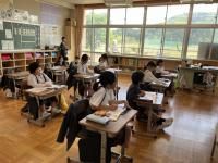町野小学校全教室の授業を参観されました。