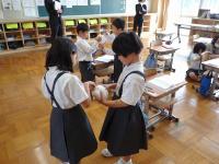 2年生が先生になって、1年生に使い方を教えました。