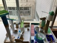4年生「コロコロガーレ」ビー玉が転がるようなコースを作りました。