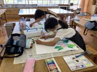 図工室では、3年生が「6月の絵」の作品作りをしていました。