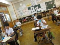 複式授業では、先生が隣の学年の指導にいっている間、自分たちで学習を進めます。