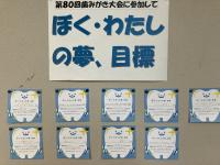 掲示した子どもたちの夢・目標は「きれいな歯になりたい。」「テニスが強くなりたい。」「頭が良くなりたい。」等です。