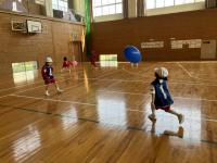 ボールゲームの学習の前に、いろんな道具を使って投げるゲームをしました。