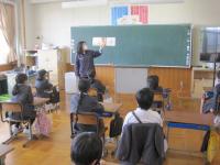 宝立小中学校3年生15人と、町野小学校3年生13人で、「わたしたちの学校じまん」の学習をしました。