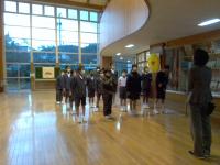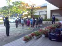 朝早く学校で出発式をして、バスに乗って出発しました。