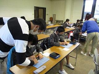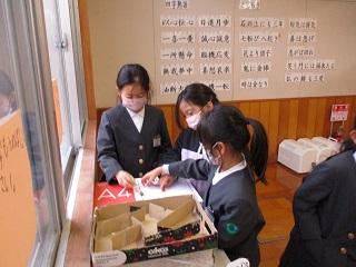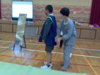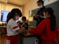 5・6年生は、家庭科で5年生と6年生がペアになってボタン付けをしました。