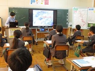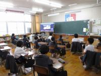 土砂災害の種類について動画を見たりクイズを交えた説明を聞いたりした後、