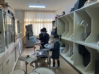 トランペットの扱い方、持ち方、メンテナンスの仕方を教わり、