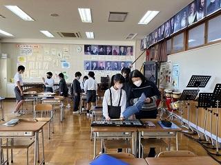 感染症対策をしながら(自分で作って自分で食べる)、ご飯・味噌汁の調理実習をしました。