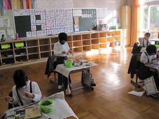 6年生が、5年生に教えながら「いいじゃん!」と褒めていました。