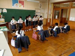 朝読書の時間、図書委員会が各教室で読み聞かせをしました。