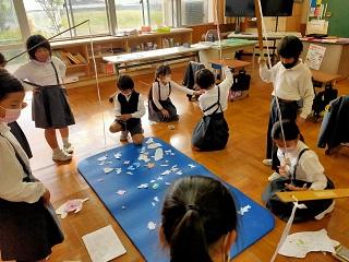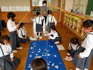 教室に2年生を招待し、自分たちがつくったゲームで遊んでもらいました。