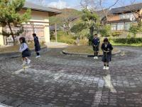 登校時の様子です。朝から校舎前の雪かきを子どもたちも手伝ってくれました。
