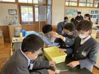 3・4年生が、春から学級園で育てた大豆を使って、豆腐作りをしました。