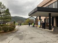 キゴ山ふれあい研修センターで、朝食を食べ、部屋の掃除をして