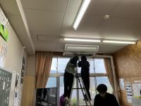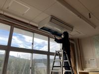 職員みんなで教室のエアコンと空気清浄機のメンテナンスをしました。