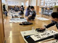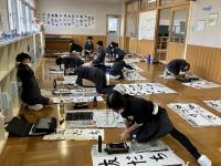 校内書き初め作品展を20(金)正午まで玄関ホールにて展示しております。