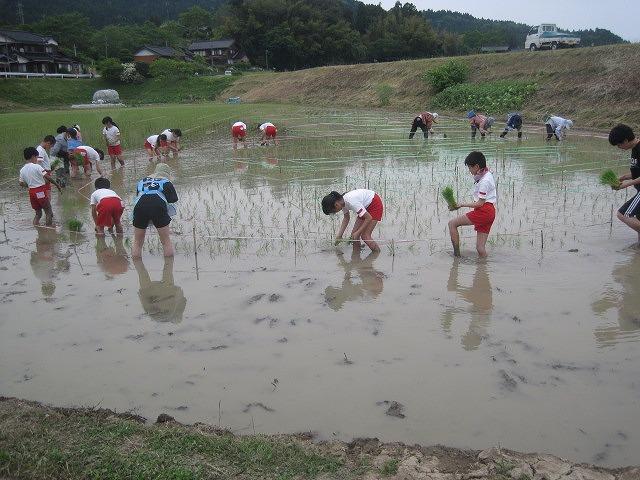5・6年生が地域の先生方に教えて頂きながら田植えをしました。