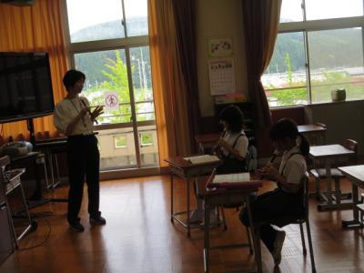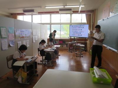 総合の発表では、「米作りのことについて詳しく調べていてすごいと思いました。」「スライドが見やすくまとめられていました。」といった感想が出ました。両校にとって実りのある交流になりました。