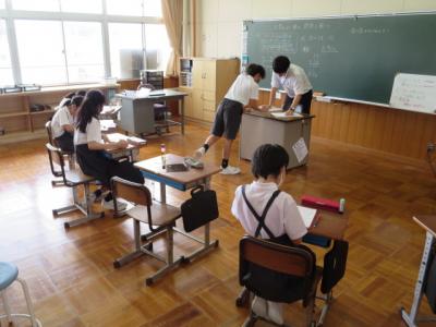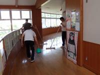 今日は6限終了後、小学校3~6年生と中学生で校内の水拭き掃除を行いました。