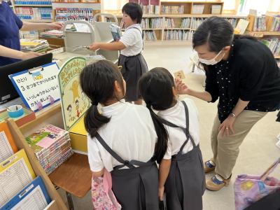 本日の昼休みは、届いた絵本を借りにきた子供たちで図書館がにぎやかになっていました。