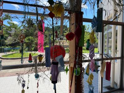 町野小学校では、今年も、たんざくに願いをこめて飾りました。