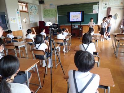 オンライン交流では、自己紹介や質問タイム、総合の授業で学習したことの発表などをしました。