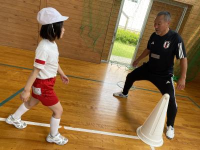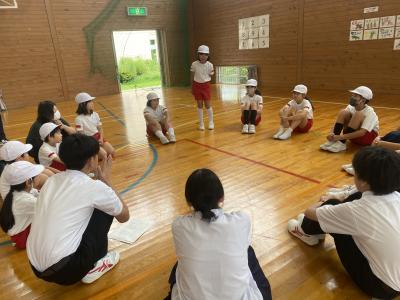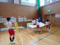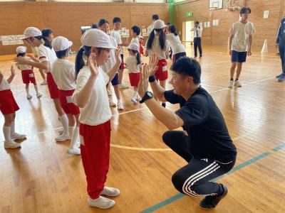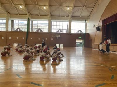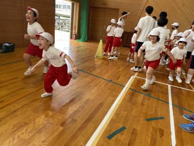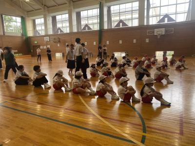 前半はじゃんけんやボールを用いた運動に子どもたちは大喜びで体を動かしていました。子どもたちに対する指導もとてもあたたかく、皆穏やかな気持ちで楽しみながら取り組んでいました。