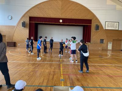 後半には元日本代表チームと中学生チームで試合が行われました。数々のスーパープレーにみんな驚いて観戦していました。中学校のお兄さんお姉さんも負けずに食らいついていて大変立派でした。