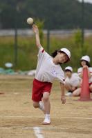 まずは、グランドで「50m走」と「ソフトボール投げ」