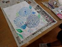 5年生は、図工の「あの時 あの場所 わたしの思い」の学習であじさいの絵を描いていました。