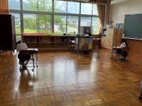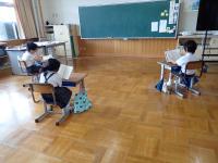 体育館から戻ると、いくつかの教室で児童の「第九」を真似する歌声が聞こえてきました。