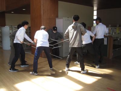 体育館の物入れも少し動きました。