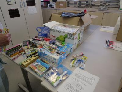 日本経済団体連合会 より学用品のセット「うるうるパック」。1人1パックいただいています。会員企業の寄付、ボランティアによるお世話で提供してくださったとのことでした。