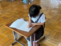 夏休みに入って2週間、久しぶりに子どもたちが登校しました。仕上げた応募作品などを手に日焼けした元気な顔を見てひと安心です。