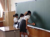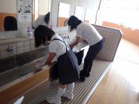 今日は6限終了後、小学校3~6年生と中学生で校内の水拭き掃除を行いました。