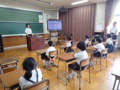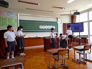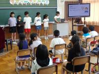 保健環境委員会が、全校のみんなに熱中症予防をよびかける発表をしてくれました。