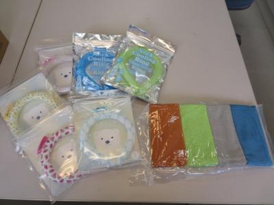 冷感タオルは、運動会とその練習に使わせていただきます。ネッククーラーは家庭で使ってもらえるよう12日に配布する予定です。暑い夏を少しでも快適にとのお心遣い、本当にありがとうございます。