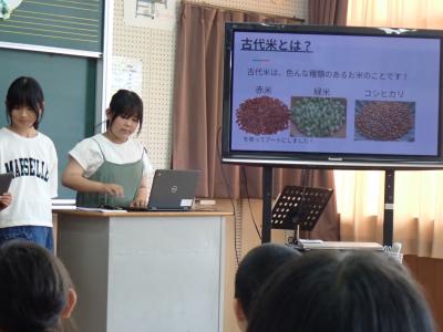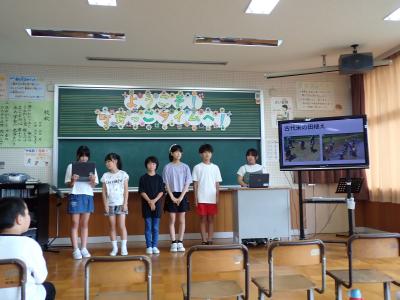 56年生は総合的な学習の時間に取り組んだアート田について紹介しました。