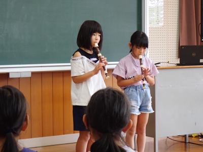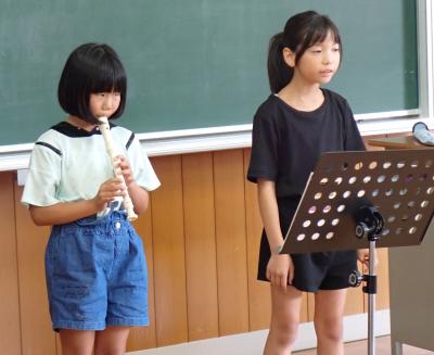 3年生はリコーダー奏、4年生は歌とリコーダー奏を披露しました。