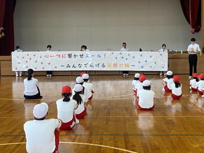 今年のスローガンは、「心を一つに響かせエール みんなでつなぐ笑顔の輪」になりました。