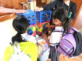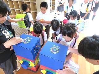 6月27日、震災機構様を通じて、カプセルトイ販売会社ケンエレファント様よりカプセルトイの寄付をいただきました。段ボール製のガチャ機も貸し出ししていただきました。