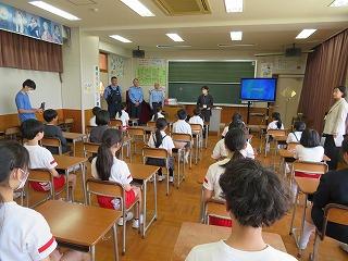 27日(水)輪島警察署、輪島駐在所勤務の方3人をお招きして、全校での交通安全教室を行いました。