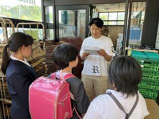 総合的な学習の時間に学んだ米づくりの中間発表として、種もみ撒き、アート田デザイン、田植えについて、スライドを使って説明してくれました。