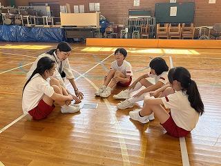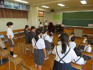 体育館に集合すると、3月まで一緒に勉強した仲間たち、児童も先生方も、久しぶりの再会に、「わあ~久しぶり~」と手を振る様子、笑顔がたくさん見られました。