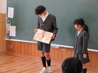 図書委員の児童たちが、朝読書の時間に、読み聞かせをしてくれました。自分たちで本を選んで読む練習をし、12年教室・34年教室の2か所に分かれて、絵本を読んでくれました。